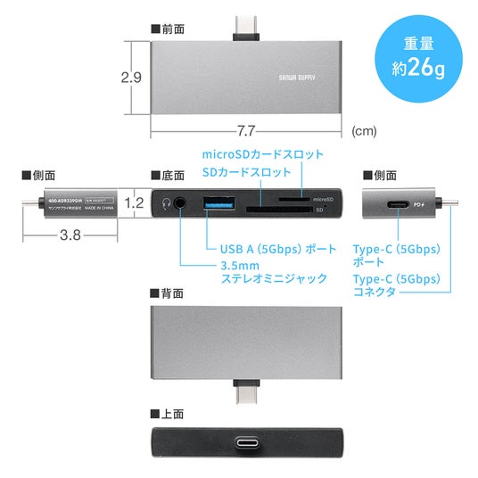 ・5ポート(USB-A・USB-C・SD・microSD・イヤホンジャック)搭載で多機能