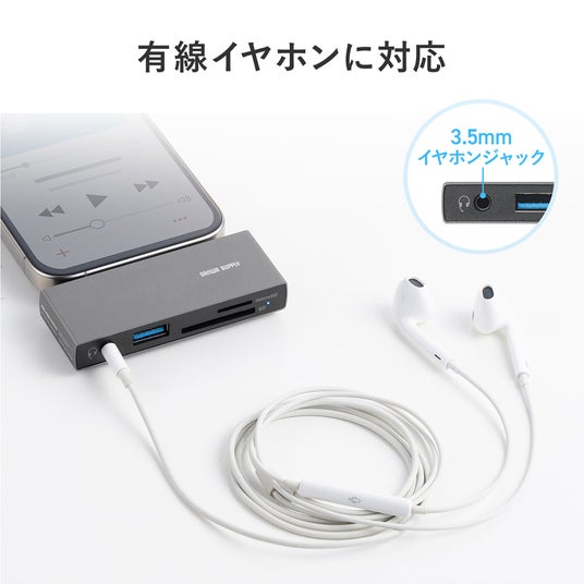 サンワサプライ株式会社(本社:岡山市北区田町1-10-1、 代表取締役社長 山田 和範)が運営している直販サイト『サンワダイレクト』では、USB-A×1、USB-C×1、SDカード、microSDカード、3.5mmイヤホンジャックの合計5つを搭載した、ケーブルレスでコンパクトなスマホ・タブレットに直付けできる、USB-C接続の5 in 1 マルチUSBハブ/カードリーダー「400-ADR339GM」を発売しました。