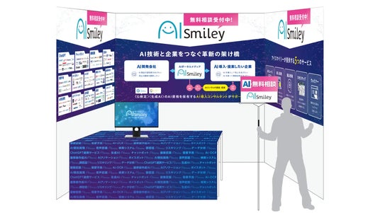 会場では、最新のAIソリューションやニュース等を取り上げるAIポータルメディア「AIsmiley」活用方法のご案内と、AI導入の相談を受け付けます。