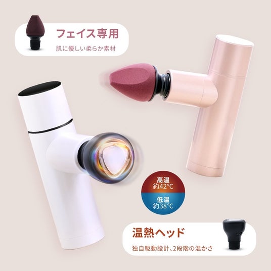 さらに、約38℃・42℃の2段階で温まる独自設計の温熱ヘッドが、じんわり深部までほぐし、血行を促進。