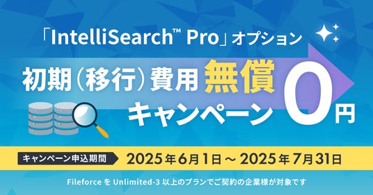 【Fileforce】高速・高精度なIntelliSearch(TM) Proオプション「初期(移行)費用無償キャンペーン」7月末まで申込受付