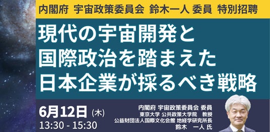 JPI(日本計画研究所)は、内閣府 宇宙政策委員会 委員 鈴木 一人 氏を招聘し、現代の宇宙開発と国際政治を踏まえた日本企業が採るべき戦略について詳説いただくセミナーを開催します。
