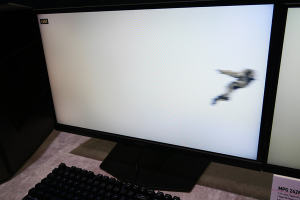 ゲーミングディスプレーの中でまず気になったのが、フルHDで24.1型の「MPG 242R X60N」。FPSプレイヤーとして、リフレッシュレートは高ければ高いほどいいわけだが、本モデルはなんと600Hz。ビジネス用途などで用いられるディスプレーはだいたい60Hzなので、その10倍となる。