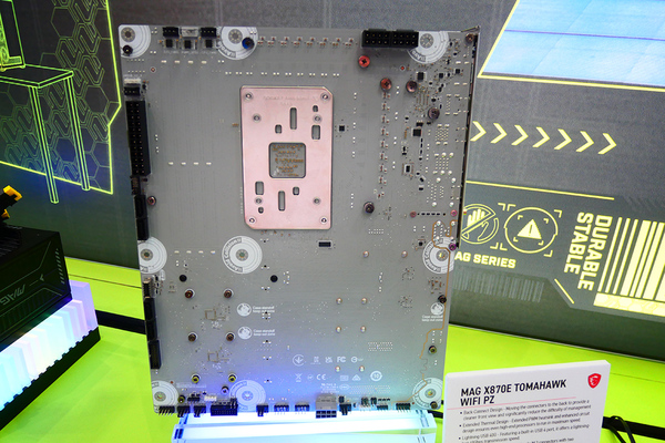 まずは、マザーボードから。裏配線を採用するX870Eマザーボード「MAG X870E TOMAHAWK WIFI PZ」が登場。裏配線を採用することでケース左サイドから見たときにこまごまとしたケーブルがまったく見えないのが特徴。加えて、ホワイトとシルバーを組み合わせることで、自作パソコンでホワイトに統一したいときにありがたいカラーとなっている。