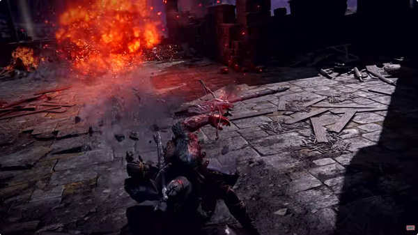 今回の映像ではパッケージに描かれたキャラ「追跡者」の戦闘を見られる。ロングソードによる斬撃と盾によるパリィ、ワイヤーを敵に射出して接近する場面や、左腕に付けた弓をチャージして強力な一撃を放つシーンなどに注目だ。