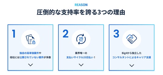 ConsultingStudioでは、業界唯一の25日支払サイクルを採用しています。 業界平均の45日と比較し、約20日報酬の受け取りが早くなります。ご自身の事業の安定や、生活の支払いといった不安を解消することができ、フリーランス特有のキャッシュフローの不安を解消します。