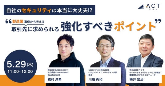 株式会社アクト(本社:東京都文京区、代表取締役CEO 小林 智彦 、以下 アクト)は、製造業におけるサイバーセキュリティの最前線をテーマにしたパネルディスカッション形式のセミナーを開催いたします。
