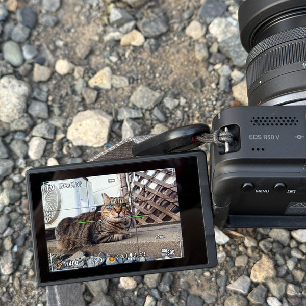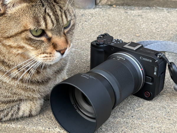 前回に引き続き、キヤノンの「EOS R50 V」。前回は動画カメラだーってことで4K動画からの切り出しを推してみたけど、EOSだから当然普通に写真も撮れるわけで、望遠系のズームレンズも用意して猫と遊ぶべく出かけたのである。