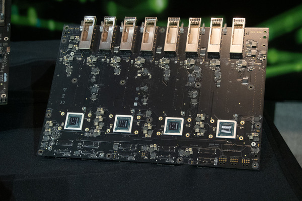 セッション冒頭、ファン氏は新しいサーバーのマザーボードを紹介。これは多数のGPUを搭載し、NVLink Switchで相互接続することで「8枚のGPUが1つのGPUになる」システムであると説明。さらに、CX8ネットワーキングにより他のコンピューターとも接続される。このシステムは空冷式で導入が容易であり、世界の主要なエンタープライズIT OEMから提供される予定だという。