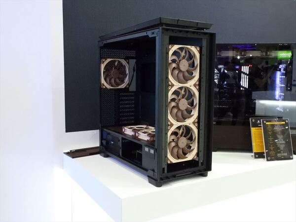 担当者によるとAntecから打診したことで実現したコラボモデルとのこと。フロントに140mmファン「NF-A14x25 G2」を3基、リアに1基、電源シュラウドトップに120mmファン「NF-A12x25 G2」を2基搭載と計6基のNoctua製ファンを備えるという贅沢な仕様だ。「その分販売価格も5万円前後になるかもしれない」とのことだが、Noctua製ファンが6基ということであれば納得(?)の価格設定かもしれない。具体的な発売時期は未定だが、続報が気になる製品といえるだろう。