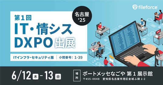 クラウドストレージ「Fileforce」を提供するファイルフォース株式会社(本社:東京千代田区 代表取締役:サルキシャン アラム)は、2025年6月12日(木)~13日(金)にポートメッセなごやで開催される「IT・情シスDXPO名古屋’25」に出展いたします。当社ブースでは、国産クラウドストレージサービス「Fileforce(ファイルフォース)」の快適な操作性や新検索機能「IntelliSearch(TM)」および、リリース準備中のデータレスクライアントサービス「ゼロトラストPC」を展示いたします。