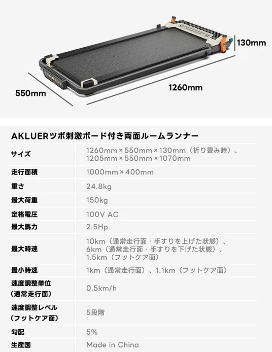「AKLUER」は、足裏刺激と通常走行を切り替えられる両面仕様により、従来の「ただ歩くだけのルームランナー」の概念を覆す次世代ホームトレーニング機器です。