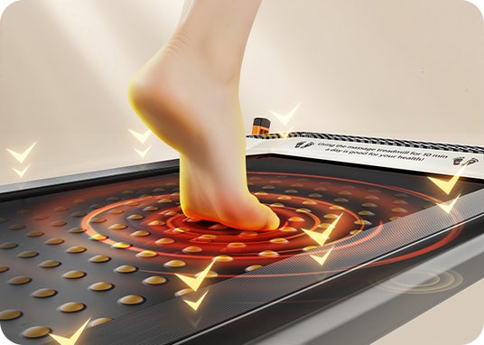 独自設計のツボ刺激ボードを搭載。まるで石畳の上を裸足で歩くような心地よさを、自宅で手軽に体験できます。時速1.1~1.5km&5段階の速度調整が可能で、運動後や仕事終わりのクールダウンに最適。