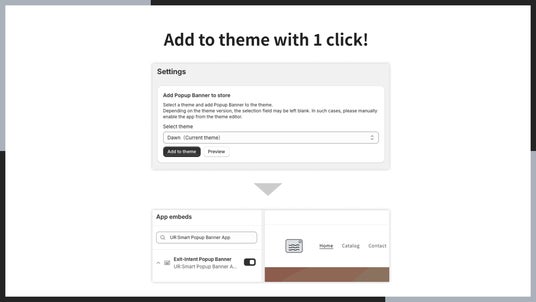 「UR: Smart Popup Banner App」は、1クリックでテーマに追加できます。