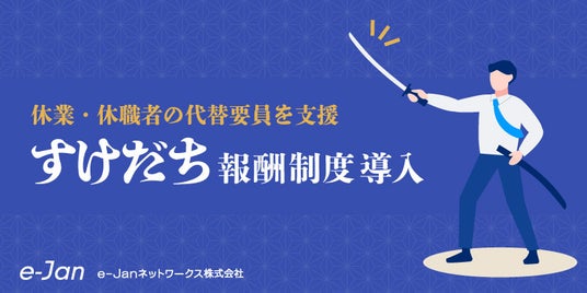 e-Janネットワークス株式会社(本社:東京都千代田区、代表取締役:坂本史郎)は、育児や介護等による休業・休職者の業務を支える代替要員の支援を目的とし、2025年度より新たに「すけだち報酬制度」を導入いたしました。本制度は、代替業務をポイント化し、そのポイントに応じて休業・休職者の業務を実施する代替要員に報酬が支給される仕組みです。育児や介護などによる休業だけでなく、傷病により突発的に発生する休職も対象とし、幅広いケースに対応しております。