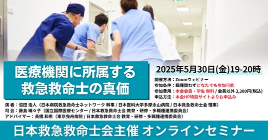 5月30日(金)に日本救急救命士会主催 オンラインセミナー「医療機関に所属する救急救命士の真価」を開催します。