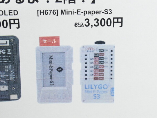 電子ペーパーを搭載した超コンパクトサイズのマイコン「Mini E-Paper S3」が店頭に入荷している。LILYGOブランドの製品で、みんなのラボ/Shigezoneにて価格は3300円。