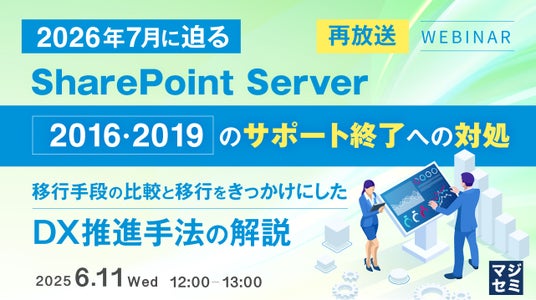 マジセミ株式会社は、大変好評をいただいた「【再放送】2026年7月に迫る、SharePoint Server2016・2019のサポート終了への対処」というテーマのウェビナーを再放送します。