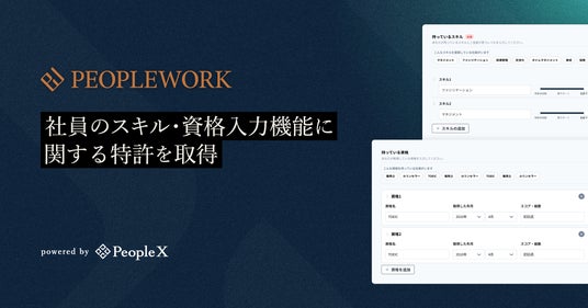採用から活躍支援まで、AIで人事課題を解決する株式会社PeopleX(本社:東京都新宿区、代表取締役 CEO:橘 大地、以下:当社)は、この度、社員のスキル・資格入力機能に関する特許を取得したことをお知らせいたします。