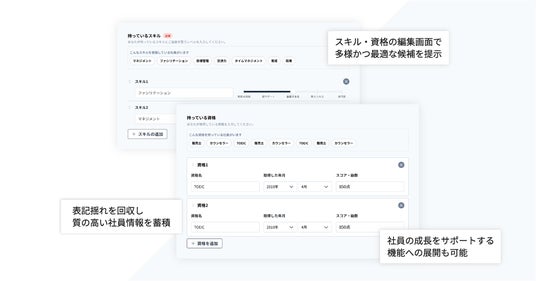 この課題に対し、当社は、社員が自身の重要な情報を積極的に更新・活用したくなる体験こそ「エンプロイーサクセス」の鍵になると考え、本特許技術を開発しました。本技術は、スキルや資格の情報入力体験を、発見や成長を促す魅力的で価値あるものに変革します。これにより、社員の自発的な情報登録が促進され、企業内に蓄積される社員情報の質と量が向上します。