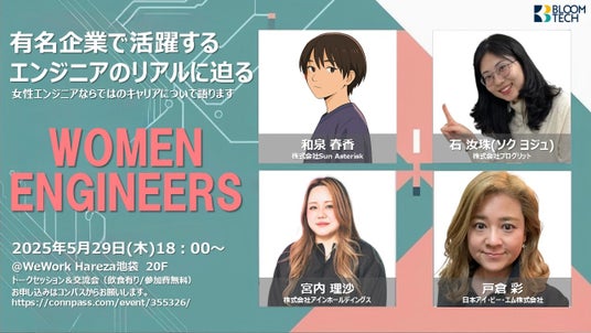 ITエンジニアのキャリア支援を行う株式会社ブルームテック(本社:東京都渋谷区、代表取締役:小山竜男)は、2025年5月29日(木)、WeWork Hareza池袋にて、女性ITエンジニアのキャリアと働き方をテーマにしたリアルイベントを開催いたします。