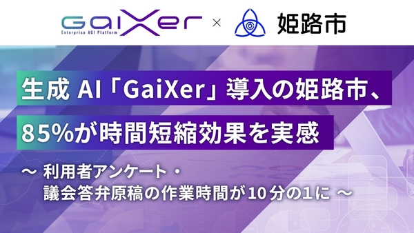 FIXERは、2025年5月21日、姫路市の職員に対する、生成AI利用についてのアンケート分析を発表した。同市では、職員の事務負担軽減や業務効率化を目的として、2024年7月よりFIXERのエンタープライズ向け生成AIサービス「GaiXer(ガイザー)」を導入・活用している。