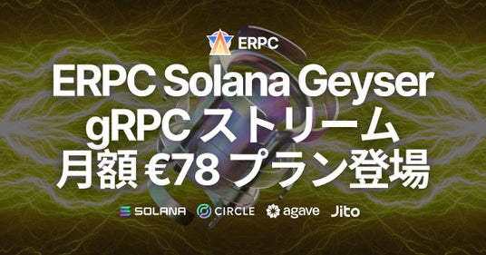 ERPC、Solana Geyser gRPC ストリーム月額 ユーロ78 プランをリリース
