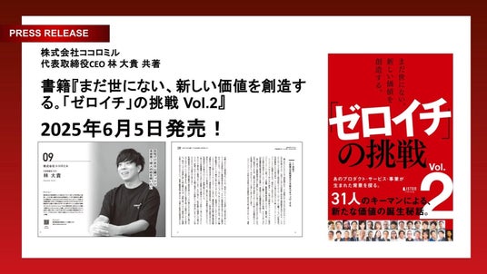 株式会社ココロミル(本社:東京都新宿区、代表取締役社長:林大貴、以下「ココロミル」)は、リスナーズ株式会社のプロデュースによる書籍『まだ世にない、新しい価値を創造する。「ゼロイチ」の挑戦 Vol.2』に共著者として参画し、同著が2025年6月5日にAmazon.co.jpより発売されることをお知らせいたします。