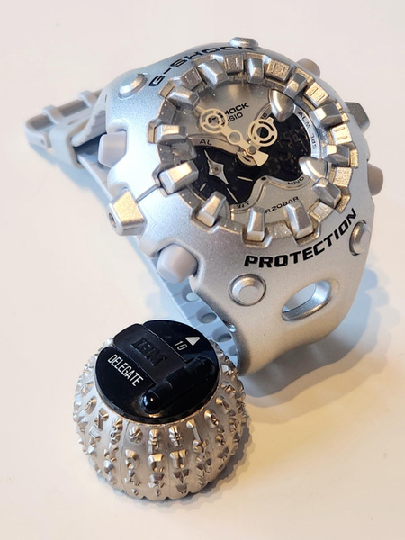 まるでSF映画の小道具、あるいは未来のインセクト型ロボットのようなこのイガイガG-SHOCKは、なぜ今このタイミングで登場したのか? それはG-SHOCKというブランドが、定番に甘んじず挑戦を続けている証かもしれない。