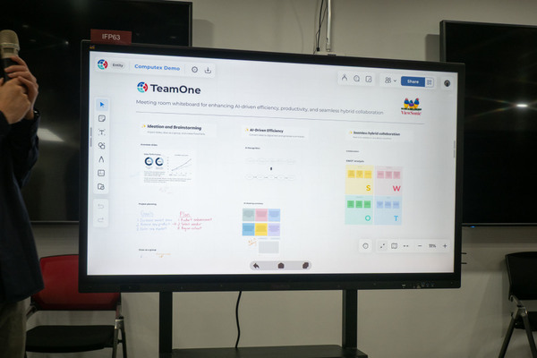 会議室および学習環境向けには、インタラクティブディスプレー「ViewBoard」と独自ソフトウェアスイートを組み合わせたソリューションを紹介。会議室ソリューションの中核となるのは、インタラクティブフラットパネル(IFP)上で動作するミーティングルームホワイトボード「TeamOne」。