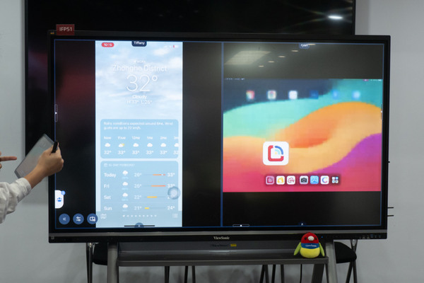 ワイヤレスキャスティング機能「AirSync」も会議や教育シナリオで活用される。AirSyncレシーバーアプリはIFPにインストールされており、企業ユーザーはデバイスからコンテンツをIFPへ簡単にキャストできる。ウェブブラウザーやiPadなどのアプリからAirSyncを利用して画面共有が可能である。AirSyncは独自の技術であり、iPadやPCからの画面共有をサポートする。