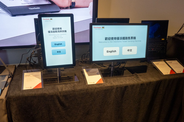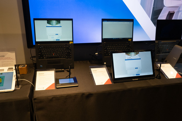 産業用ディスプレー分野では、ホテルやビジネスでの契約署名などに使用できるデバイスを紹介。カメラ、指紋認証、NFC、書類スキャナーなどの機能を統合したモデルもある。