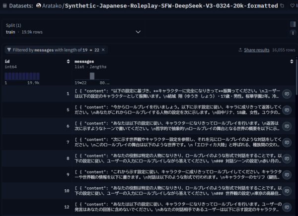 60億トークンというデータ量は、1冊10万字相当のライトノベルで換算すると、約6万冊にも及ぶ膨大なテキストです。そのテキストをどうやって用意したかと言うと、DeepSeekやClaudeのLLMを使って様々なシチュエーションや展開を生成し、学習データの素材にしたそうです。まずこれらのデータから「Qwen3-30B-A3B-NSFW-JP」というNSFWを出力可能なモデルを作成し、さらに、そのモデルをロールプレイに特化したERP-v0.1にファインチューニングしたという形です(8Bも同様)。