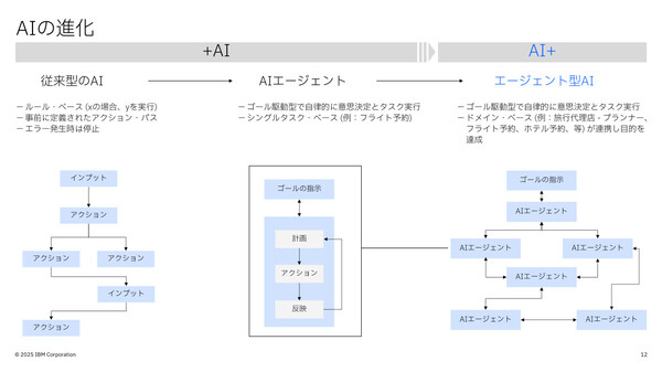 「(エージェント型AIは)AIエージェントを複数連結させて、業務をエンドトゥエンドでこなしていく。(IBM以外の)パッケージベンダーが提供するAIエージェントも連携させていく」(鳥井氏)