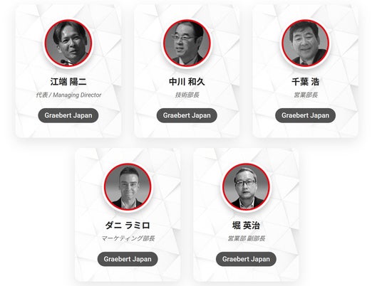 登壇者:江端 陽二(Graebert Japan 代表)、中川 和久(同 技術部長)、千葉 浩(同 営業部長)、ダニ ラミロ(同 マーケティング部長)、堀 英治(同 営業部 副部長)