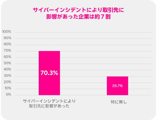 実際にサイバーインシデントの被害を受けた企業の7割が取引先にも影響があったと答えており、セキュリティ対策の実施が事業の存続に直結することがわかります(注2)。