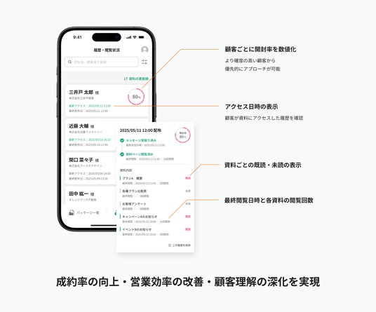 ・閲覧データにより顧客への理解が深まり、顧客ごとに最適な営業アプローチが可能に。成約率の向上が見込めます。