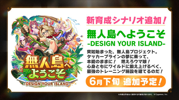 また、2025年6月下旬には新育成シナリオが追加予定。今度の舞台は無人島!?最強のトレーニング施設を建てて心身をワイルドに鍛え上げるシナリオになる模様だ。そちらも続報に期待しよう。