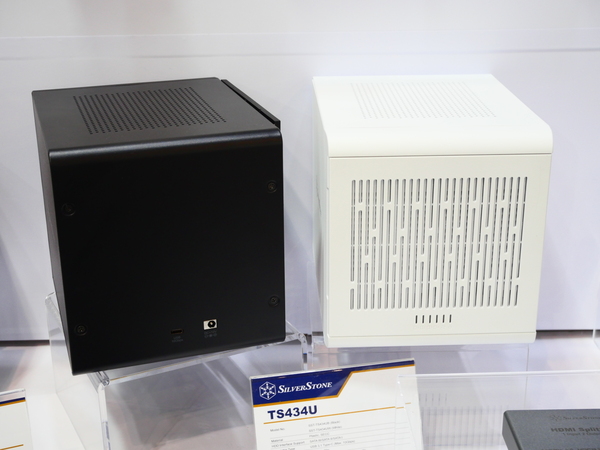 そのほか、最大4台の2.5/3.5インチストレージを搭載できる外付けケース「TS434U」も展示。ホワイトとブラックの2モデルあり、コンパクトなので設置しやすいのもポイントとなっている。