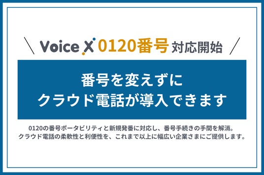 これまでVoiceXでは、主要な市外局番や050番号の番号ポータビリティに対応してまいりましたが、お客様からの強いご要望を受け、この度0120番号についても対応範囲を拡大いたしました。