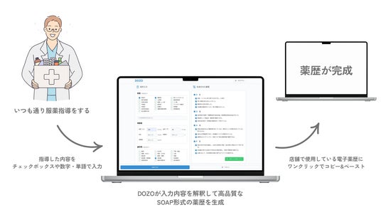 薬歴サポートAIシステム「DOZO」を2025年6月から提供開始。生成AIで薬局業務をもっとラクに。14日間無料トライアルも実施