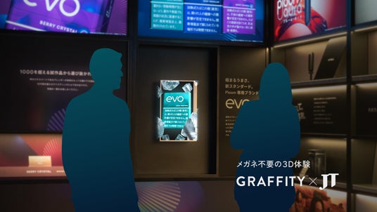 Graffity株式会社(代表取締役社長:森本俊亨、本社:東京都目黒区、以下「Graffity」)は、日本たばこ産業株式会社(以下「JT」)が主幹として運営するPloom Shop銀座店・なんば店・名古屋店において、裸眼立体視ディスプレイ「Looking Glass」を用いた加熱式たばこ専用スティックブランド「EVO(エボ)」の立体映像体験を2025年5月27日(火)より常設で提供いたします。裸眼で複数人が同時に視認できるライトフィールド方式を活かし、「エボ・ディープ・レギュラー」「エボ・コールド・メンソール」「エボ・ベリー・クリスタル」の3種パッケージを視覚的にインパクトのある立体映像として表現し、ブランド価値を直感的に体感いただけます。
