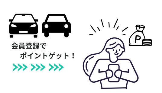 1.会員登録するだけで100ポイントプレゼント!2.駐車場利用ごとに200円で1ポイントたまる!