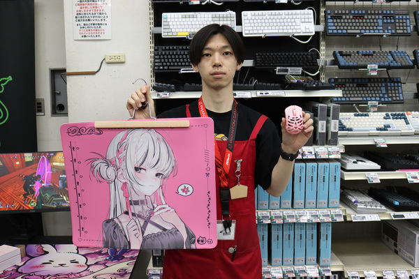 大阪・日本橋のPCパーツショップ「PCワンズ」を取材しました。店舗スタッフ・尾崎怜史さんのオススメは、WLMOUSEのワイヤレスゲーミングマウス「Beast Miao」。猫耳や肉球のデザインが施された小型・軽量の可愛らしいゲーミングマウスです。