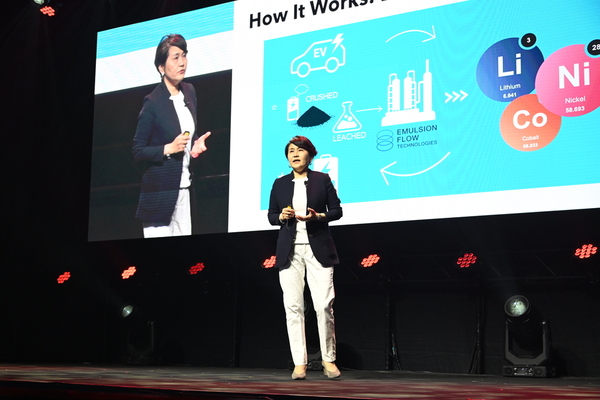 エマルションフローテクノロジーズ(日本、プレゼンター:Chief Global Officer/Member of the Board Yuri Iida氏) は、エマルションフロー技術を用いた資源抽出および循環ソリューションを発表。これは電気自動車(EV)などの普及で排出量が増加する使用済みリチウムイオン電池から、リチウム、コバルト、ニッケルといった重要な鉱物を高純度で回収する技術とのこと。