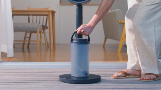 付属のタンクから水を供給するため、水道が近くになくても心地よいミストを楽しめます。タンクは取り外しでき、給水やお手入れも簡単。スタンドがついた状態はもちろん、扇風機本体のみでもタンクの接続が可能です。