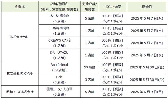 * 記載の店舗/施設数は、発表日現在の店舗/施設数となります。