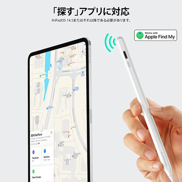 「Geoデジタルペンシル」は、多機能を備えたアクティブスタイラスペンで、特にApple社の「探す」機能に対応している点が特筆されます。これにより、ペンの位置情報を簡単に確認することが可能で、紛失時には音を鳴らして見つけ出すことができます。Bluetooth接続を利用したショートカット操作で、日常のiPad使用がさらに快適に。