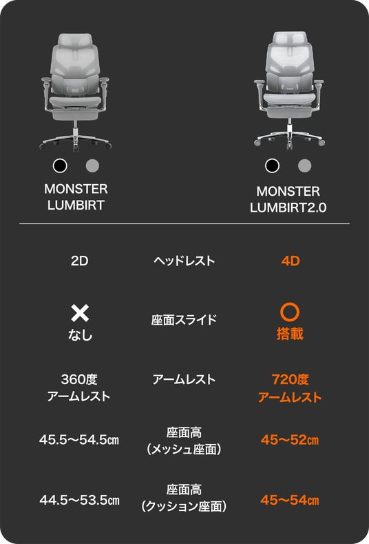 【新発売】多機能モンスターオフィスチェア MONSTER LUMBIRT(モンスターランバート)が2.0にアップデート
