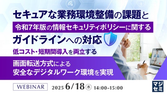 マジセミ株式会社は「セキュアな業務環境整備の課題と、令和7年版 の情報セキュリティポリシーに関するガイドラインへの対応」というテーマのウェビナーを開催します。